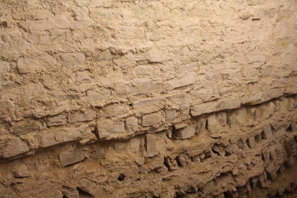 Na de uitleg en het zien van de verschillende objecten is het eindelijk tijd om de tempel te bekijken. Met smal trapje gaan we naar de ‘kelder’ van de kerk om de tempelresten te bekijken. Gebukt onder het lage plafond lopen we langs de oude tempelstructuren. De verschillende muren zijn prachtig bewaard gebleven en elk detail is zichtbaar. Doordat de regio rond Elst een erg drassig gebied was, is de tempel gebouwd op eikenhouten heipalen. Hier bovenop zijn de kalk- en tufstenen van de tempel geplaatst. Deze stenen werden helemaal uit de Eifel gehaald met schepen om in Elst een tempel te bouwen. De bezoekers die mee zijn op de rondleiding kijken hun ogen uit.