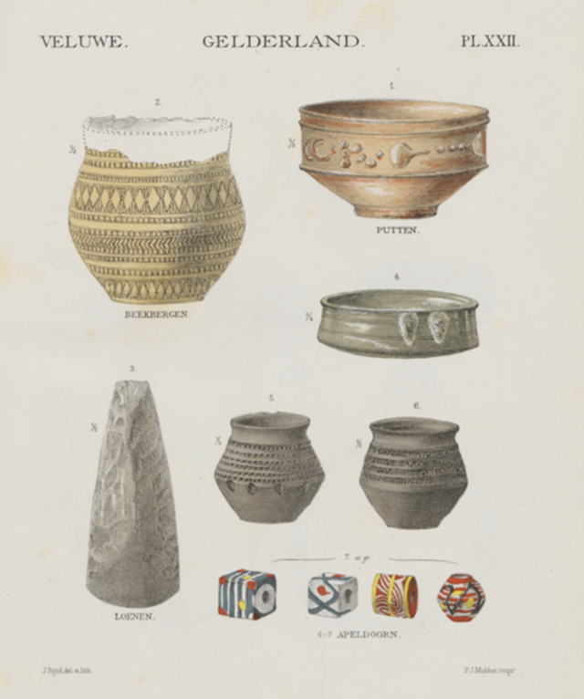 Pleyte, W. 1877. Nederlandsche oudheden van de vroegste tijden tot op Karel den Groote: afbeeldingen naar de oorspronkelijke voorwerpen of naar photographiën met begeleidende tekst en oudheidkundige kaart, Volume 1.