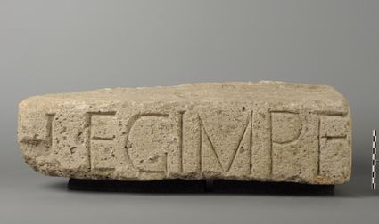 Archeologisch topstuk van Erfgoedcentrum Rozet | Een gaaf blok tufsteen met de inscriptie LEGIMPF is het fraaiste overblijfsel van de Romeinse legerplaats in Meijnerswijk.