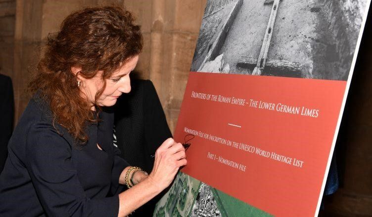 Afbeelding: Kort nadat de ministerraad op vrijdag 6 december ingestemd had met het voorstel om de Romeinse Limes in januari 2020 bij Unesco aan te dragen als werelderfgoed, zette minister van Cultuur Ingrid van Engelshoven in het Rijkmuseum van Oudheden haar handtekening symbolisch op het Nominatiedossier. Lees hier meer.