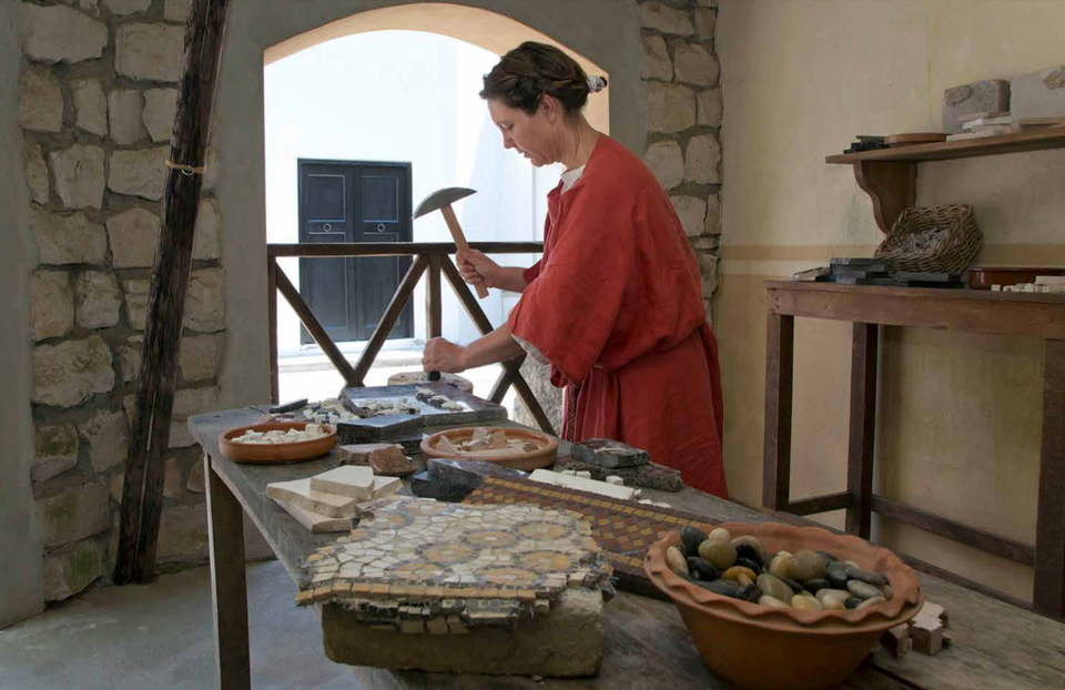 Binnen de Romeinse kunstvormen neemt het mozaïek leggen een bijzondere plek in. Als altijd combineerden de Romeinen daarbij het artistieke en het functionele – stevig en mooi tegelijk. Een mozaïek werd vaak ter plekke gelegd door steentjes in mortel te drukken. Maar ze werden ook gemaakt in gespecialiseerde ateliers en daarna verscheept. Soms bevatte een mozaïek een miljoen steentjes. Het was altijd een teken van rijkdom.
