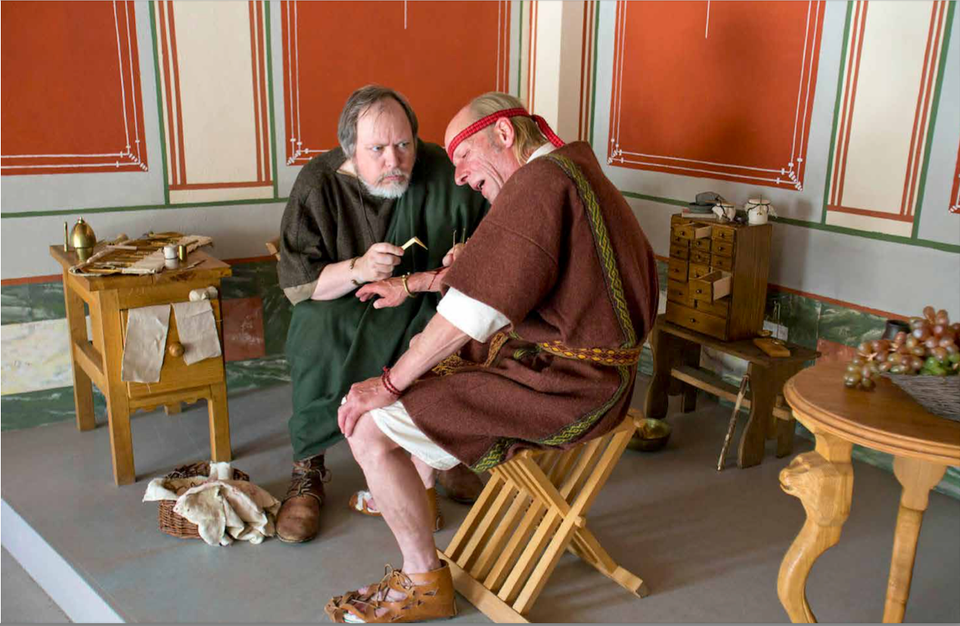 Artsen waren actief in alle lagen van de bevolking. Ze konden een eigen praktijk beginnen of in dienst treden van een stad, met een vast contract. Privé-artsen in onze streken waren meestal slaven van Griekse herkomst. De beste artsen vond je in het leger. Elke legioenplaats had een hospitaal, een valetudinarium. Zo’n hospitaal is ook teruggevonden in de legerplaats van het Tiende Legioen op de Hunerberg.