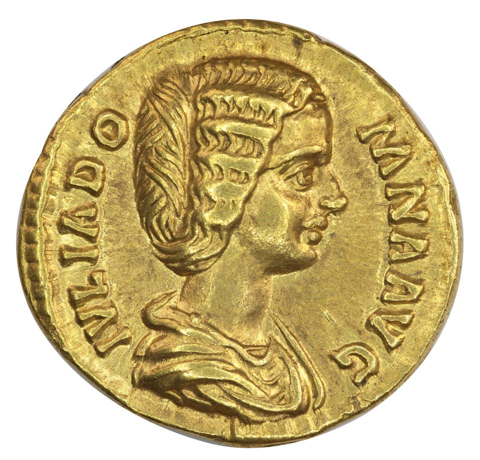 Julia Domna kwam uit de koninklijke familie van Emesa (het huidige Homs te Syrië) waar haar vader hogepriester van de zonnegod El-Gebal was. Ze huwde met Septimius Severus, een Libiër, die niet veel later keizer van het Romeinse rijk werd. Als nieuwkomer probeerde Septimius zich zo veel mogelijk te spiegelen aan de Antonijnse keizerlijke dynastie, die aan hem vooraf ging. Hij presenteerde zichzelf als de broer van de laatste Antonijnse keizer, Commodus, en hernoemde zijn oudste zoon Antoninus.