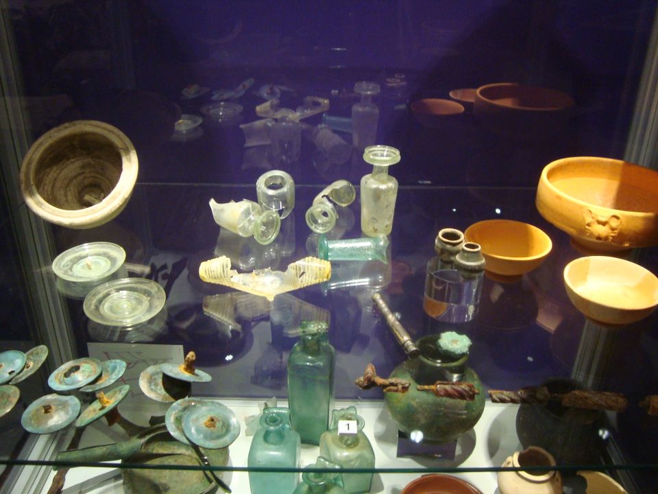 Door Saskia Stevens | Glazen flesjes en schaaltjes, aardewerk, twaalf bronzen gewelfde schijfjes en een benen handvat versierd met zilver dat ooit van een spiegel was. Die kostbaarheden vonden archeologen in een Romeins graf in de gemeente Brunssum. Ik zag ze toen ik onlangs een bezoek bracht aan het vernieuwde Thermenmuseum in Heerlen. En met wat speurwerk bleken ze veel te vertellen over een anonieme inwoner van Romeins Limburg. In de eerste plaats dat ze een vrouw was.